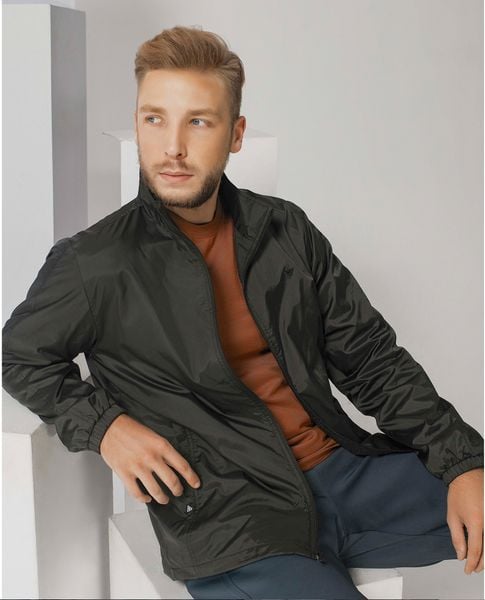 Áo khoác kéo khóa cổ cao 5 phân, có logo thêu trước ngực tinh tế.