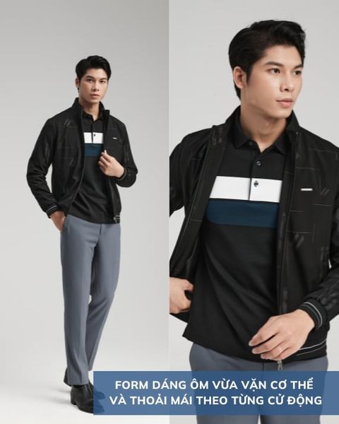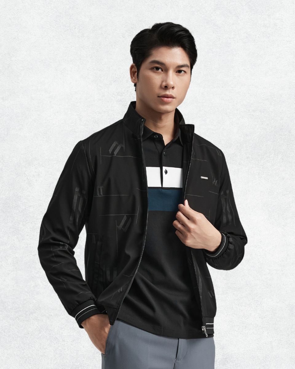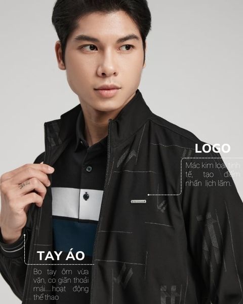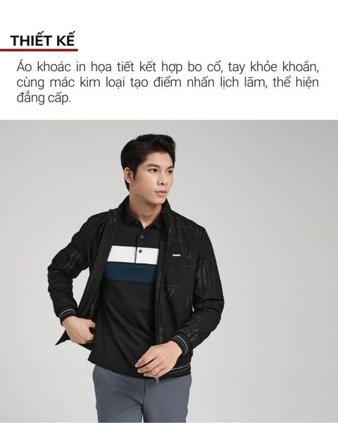 Áo khoác in họa tiết lạ mắt, thời thượng, kết hợp với chi tiết bo cổ, bo tay, tạo nên vẻ cuốn hút và khỏe khoắn cho người mặc. Mác kim loại tinh tế trên ngực áo là điểm nhấn lịch lãm, thể hiện thương hiệu đẳng cấp.