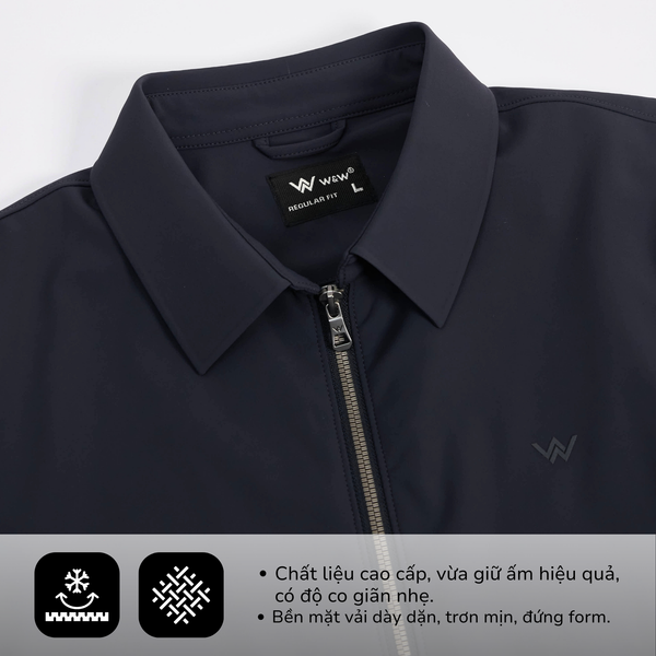Thiết kế tinh tế, đẳng cấp: Khóa kéo kim loại cao cấp cùng logo W&W được thêu sắc nét trên ngực áo là điểm nhấn tinh tế, khẳng định chất lượng và phong độ của người mặc.