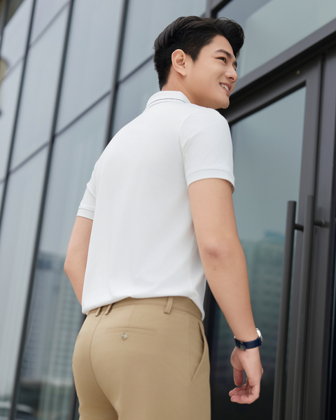 Phần cổ áo được thiết kế đầy ấn tượng với kỹ thuật dệt hiệu ứng gân, kết hợp cùng pha phối màu sắc hài hòa, tạo điểm nhấn sang trọng và nâng tầm phong cách cho quý ông.