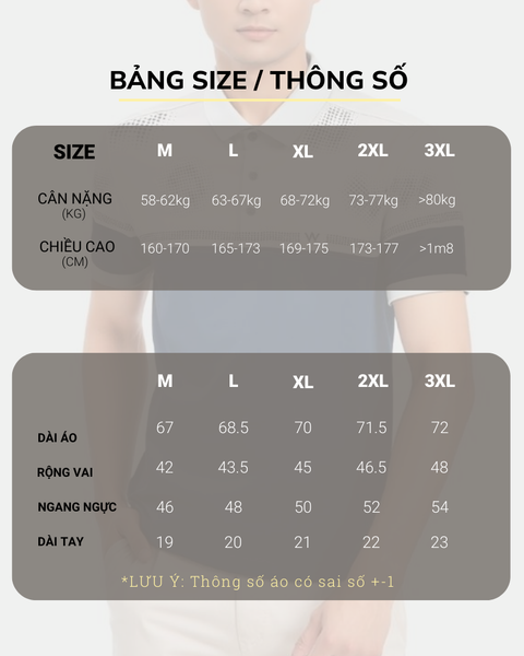 Áo có đầy đủ size từ M – 3XL, phù hợp với nhiều dáng người. Dù bạn ưa chuộng phong cách gọn gàng hay thoải mái, WPO180S đều mang đến sự vừa vặn và tự tin khi mặc.