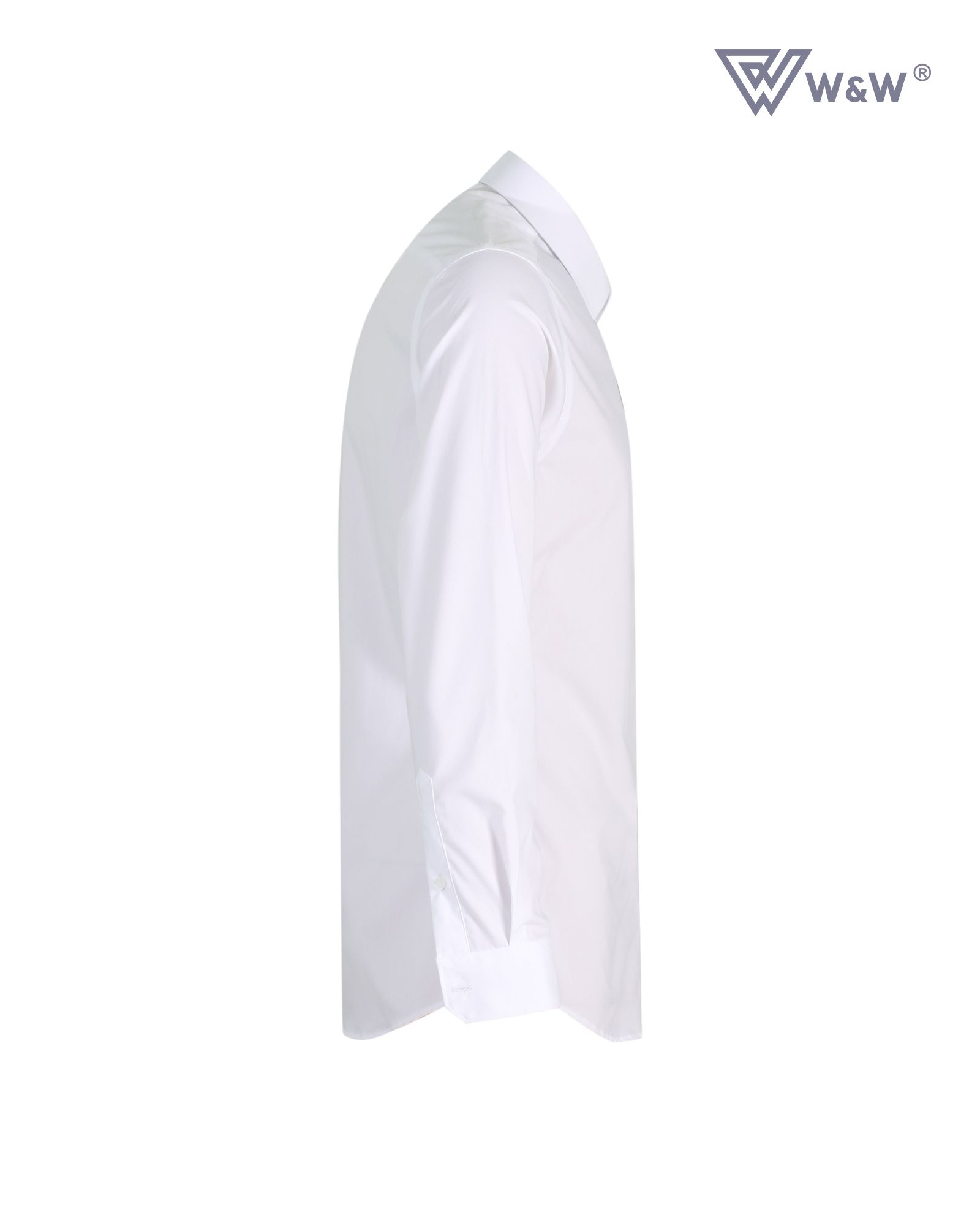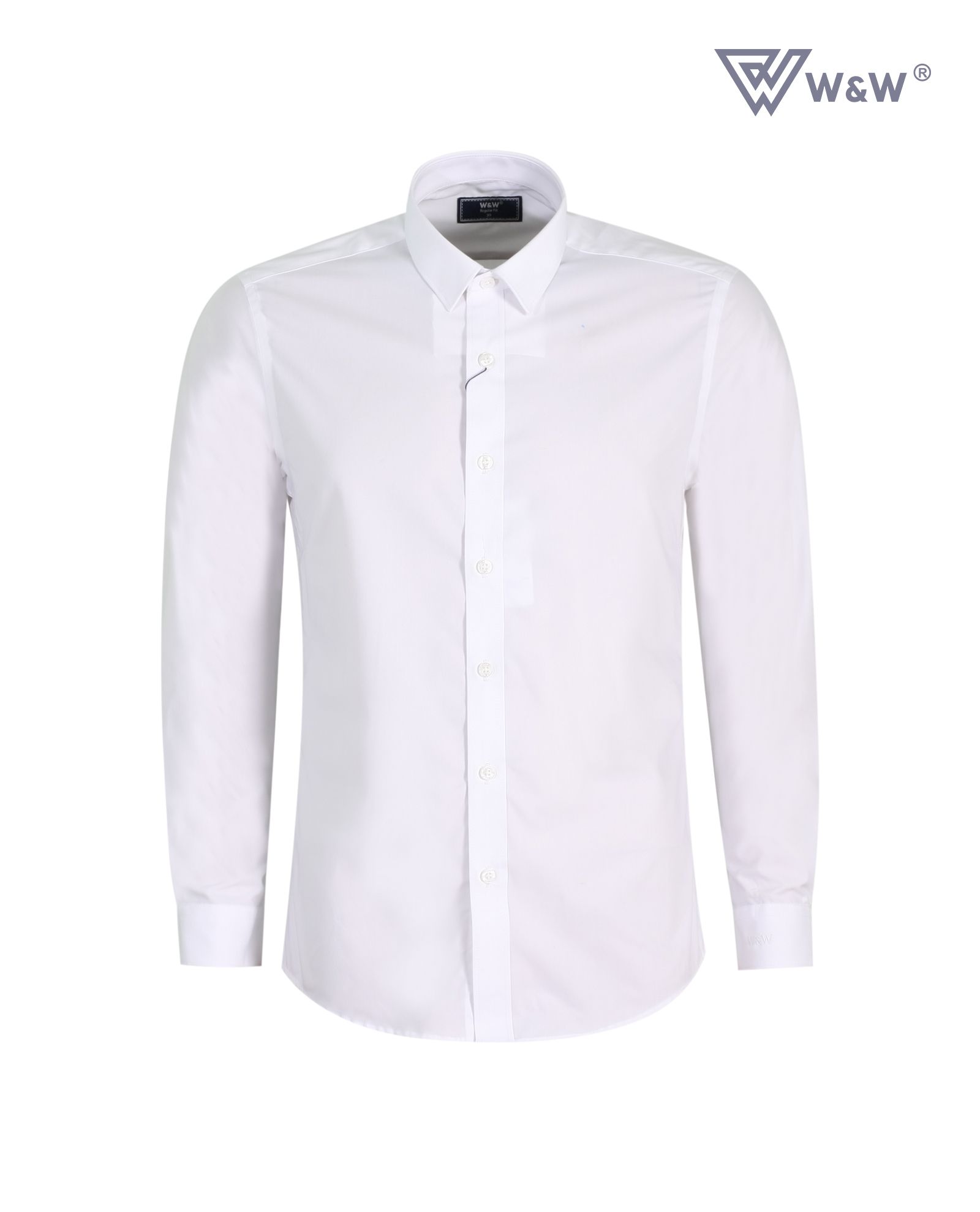 - Áo sơ mi trắng dài tay phom dáng Slim fit tôn dáng người mặc. Áo có thể sơ vin hoặc thả suông nhờ tà lượn thời trang.