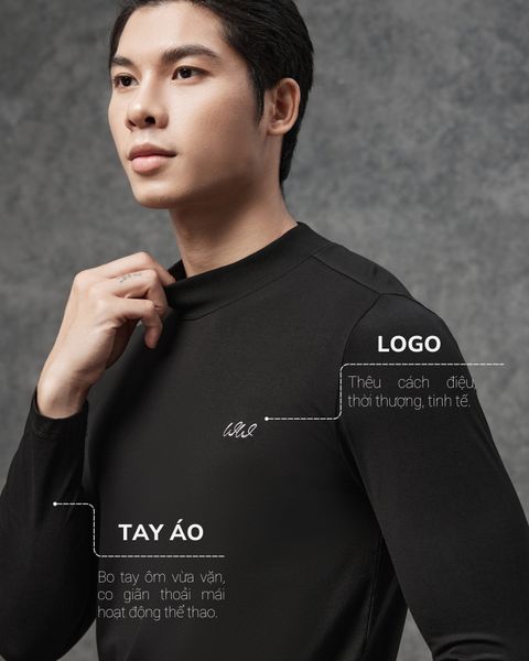 Áo thun dài tay được thiết kế ôm sát cơ thể, tôn lên dáng vẻ của người mặc một cách tinh tế. Cổ áo 4 phân ôm vừa vặn giúp giữ ấm cơ thể hiệu quả trong những ngày lạnh. Logo thêu cách điệu trên áo không chỉ tạo điểm nhấn hiện đại mà còn mang đến vẻ tươi mới và thanh lịch, làm nổi bật phong cách của người mặc.