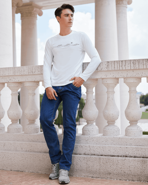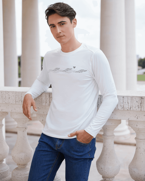 Áo thun dài tay dáng Regular ôm vừa cơ thể, tôn dàng người mặc, áo được thiết kế cổ tròn, chồm vai ra thân trước khỏe khoắn, kết hợp với họa tiết in nhiệt sắc nét trẻ trung và năng động.
