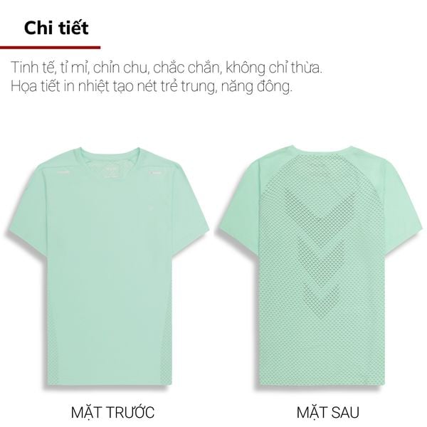 - Chất liệu: Vải dệt Single với chất liệu 95% Coolmax - loại sợi được cải tiến đặc biệt nhằm tăng khả năng thoáng khí. Sợi Coolmax không có tiết diện tròn, mà hơi dẹt, có khía chạy dọc thân sợi, thường được làm thành hình ngũ giác hoặc lục giác. Hình dạng đặc biệt này cho phép vải coolmax có tốc độ khô nhanh hơn cotton tối thiểu 2 lần. Chất liệu hút ẩm rất tốt nhưng lại thoát ẩm cao, khô thoáng nhanh. Mặt vải đanh, mát, trượt trên da và thân thiện với da. Cùng 5% Spandex giúp áo đàn hồi co giãn tốt hơn, phù hợp với những chàng trai năng động, yêu thích thể thao.