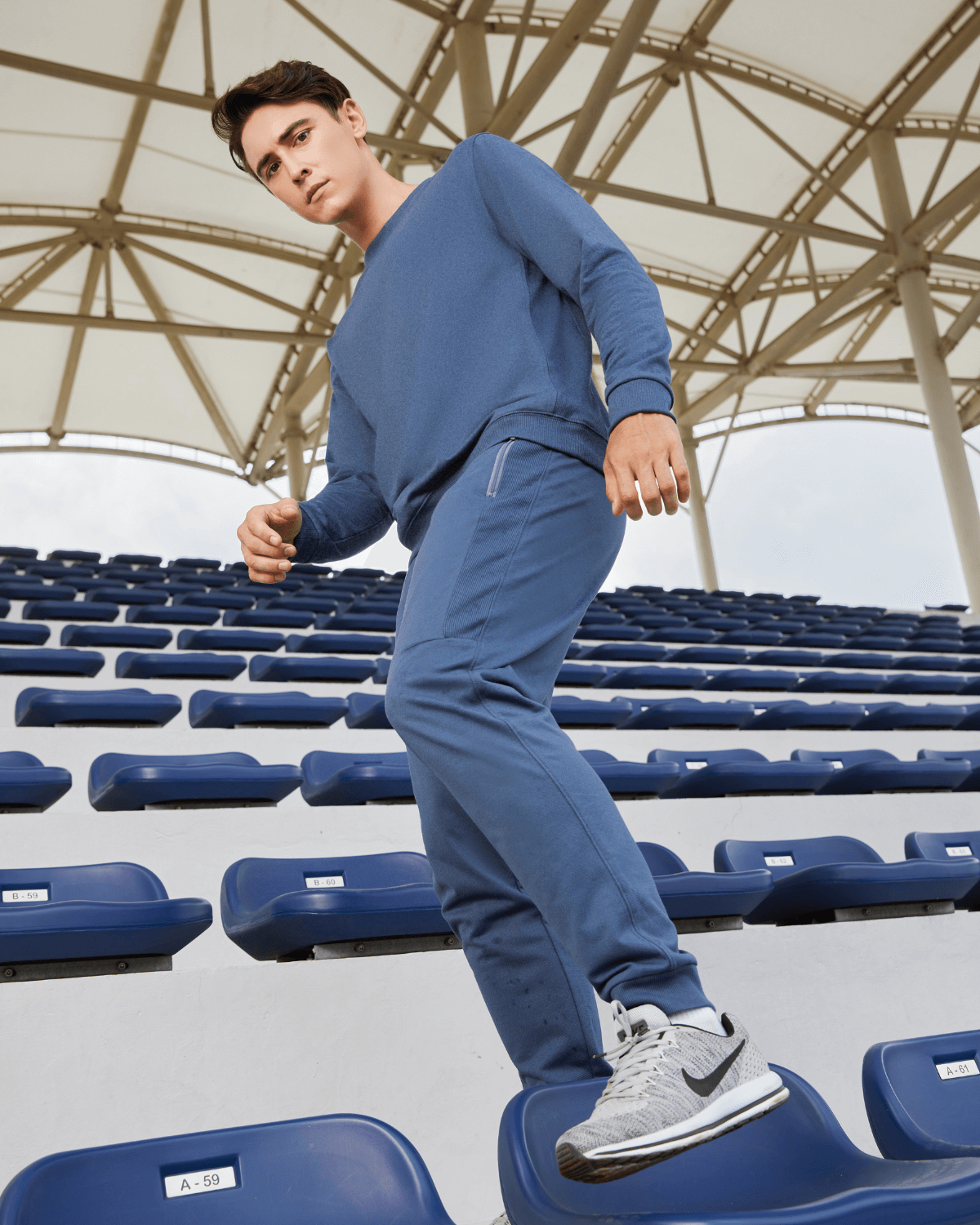 Áo với thiết kế cổ tròn và phối rip cùng màu hai bên sườn mang đến vẻ khỏe khoắn, thể thao và năng động cho người mặc. Quần nổi bật cùng thiết kế ống bo, đường phối rib tạo nên sự cá tính và thời thượng. Bộ đồ vừa giúp giữ ấm cho mùa đông, vừa thể hiện được cá tính và phong cách thời trang thể thao năng động.