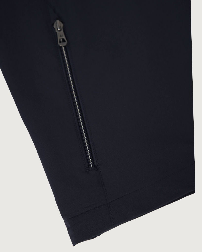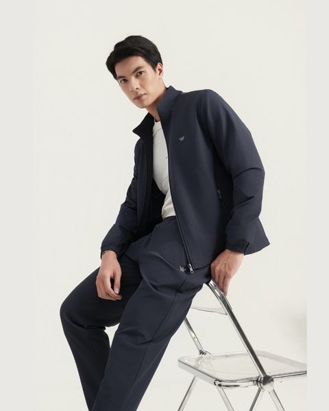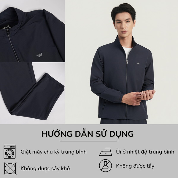Điểm nhấn tinh tế, đồng bộ: Khóa kéo ánh nhũ tạo vẻ ngoài sang trọng, trong khi logo được in đồng bộ trên cả áo và quần giúp khẳng định giá trị thương hiệu một cách tinh tế.