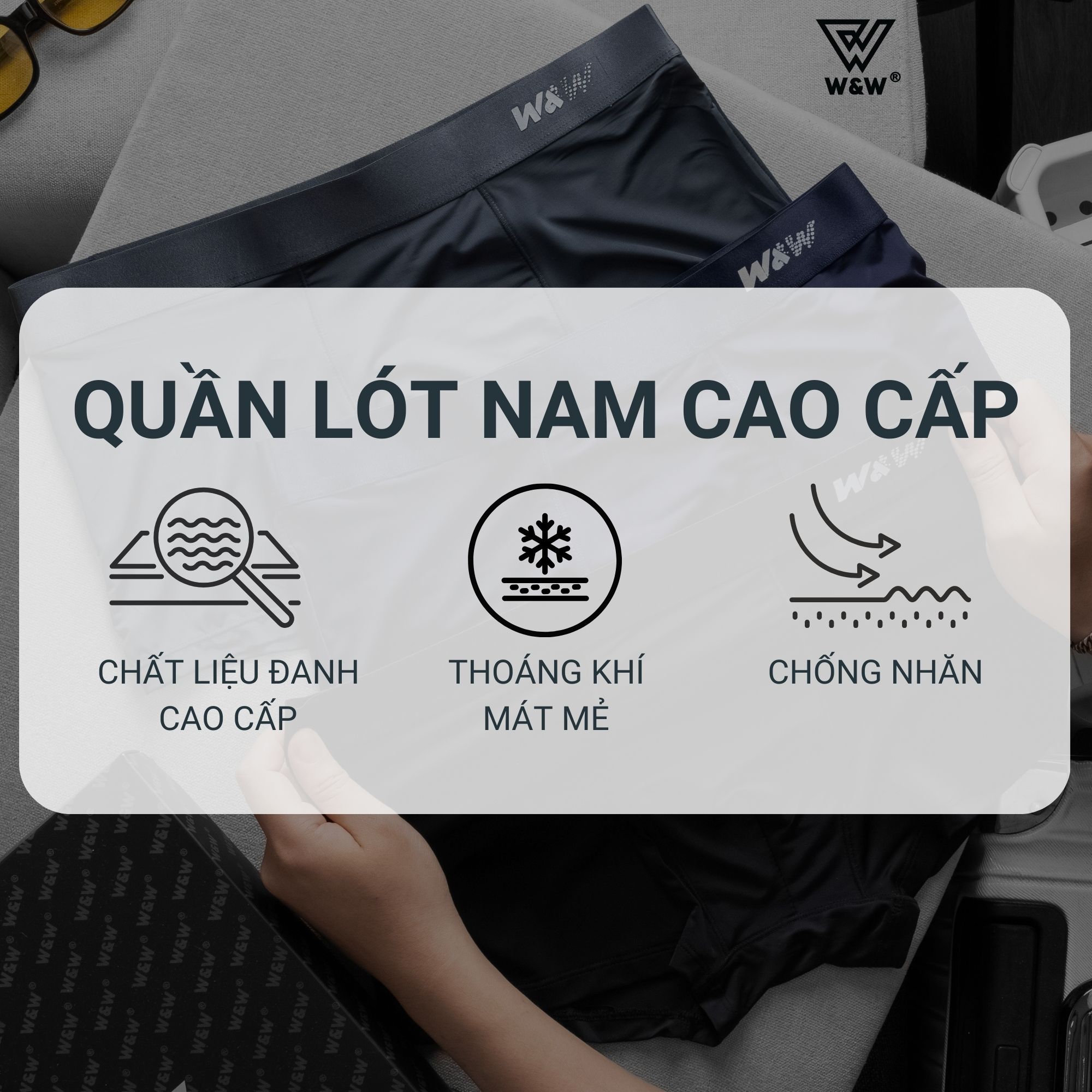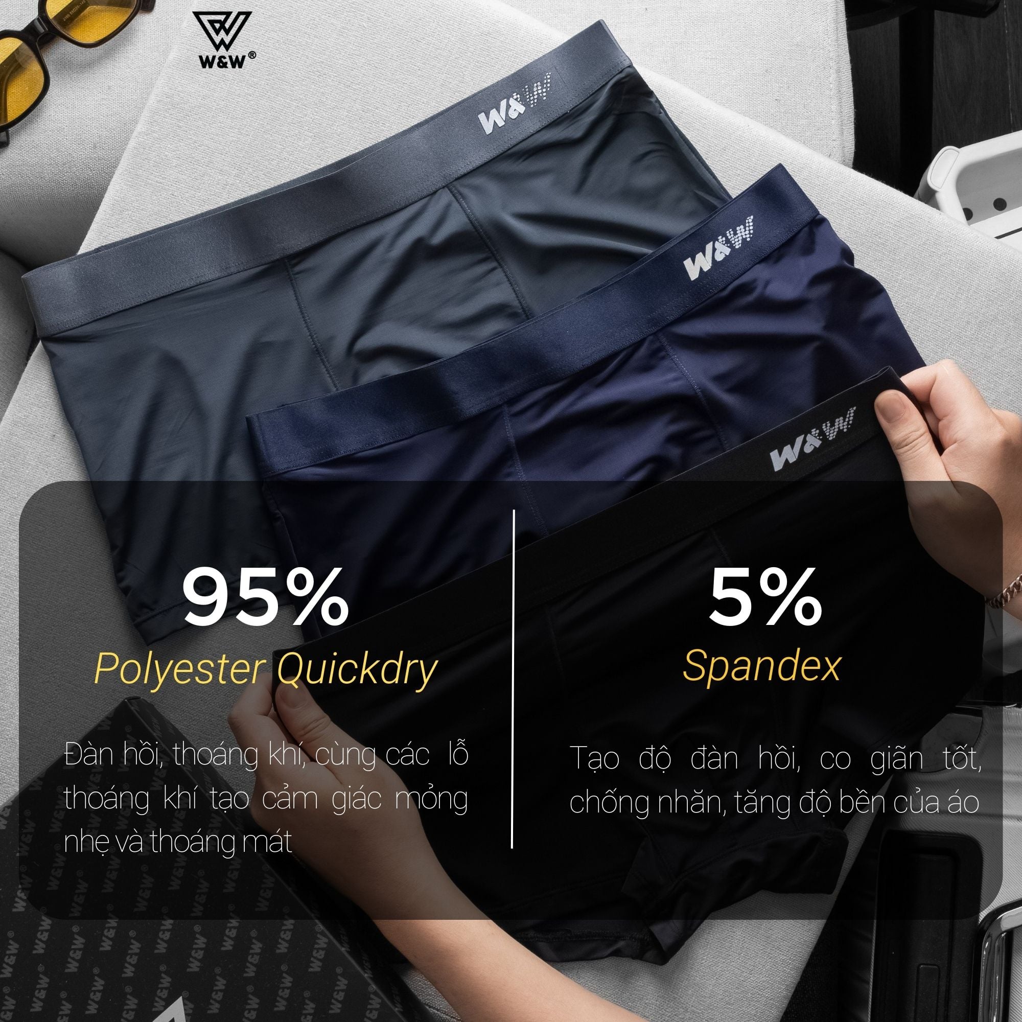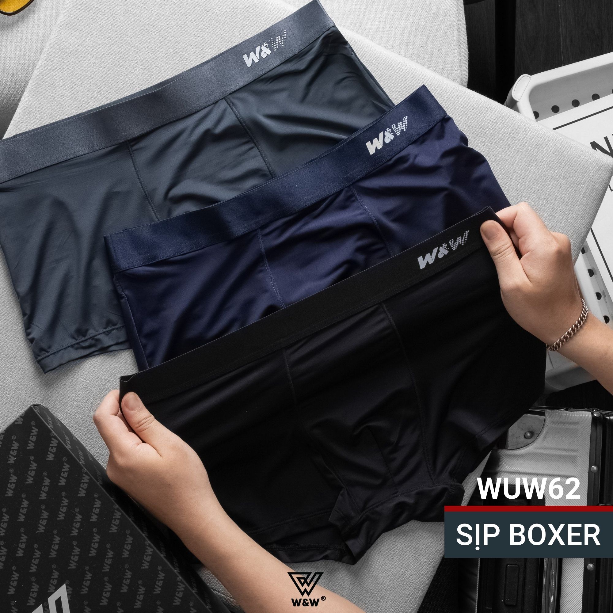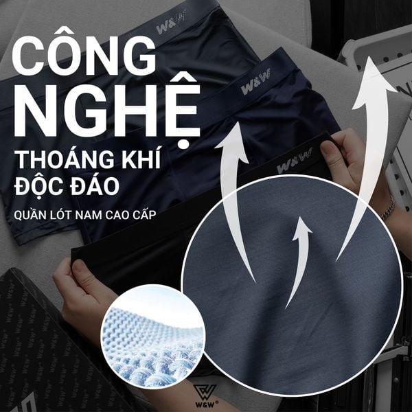 Sịp boxer nam W&W chất liệu Polyester công nghệ thoáng khí độc đáo - WUW62